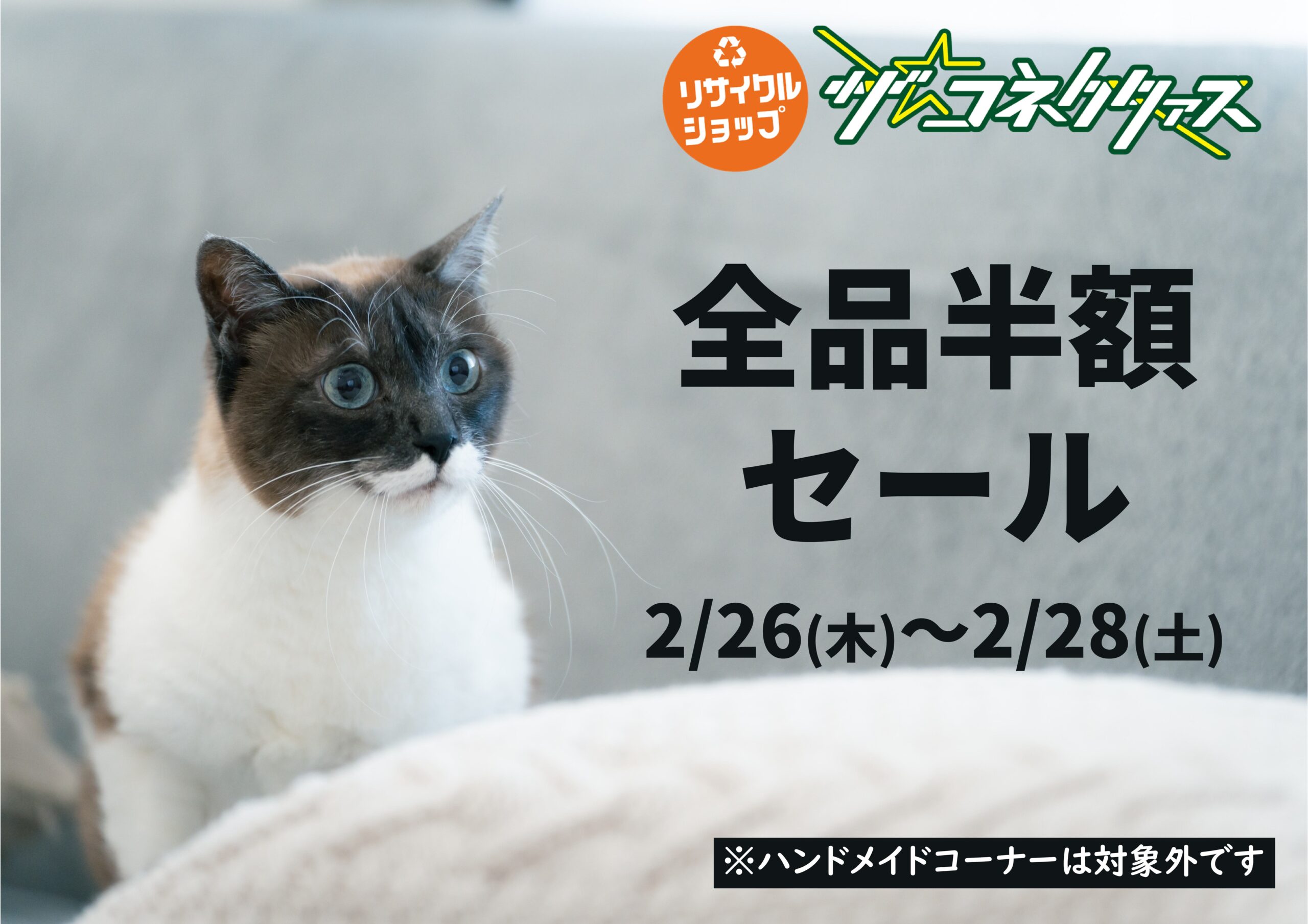 今月も店内全品半額セールを行います。