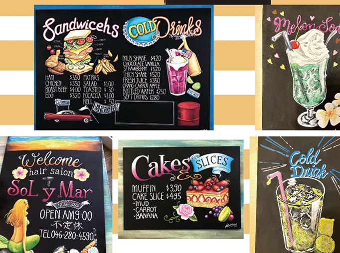 チョークアートとマーカーアートを制作しています。 マーカーアートはドリンクと一部のスイーツと パンのみになってしまいますが、 チョークアートは似顔絵以外なら描けます(笑) リクエストありましたらぜひ!