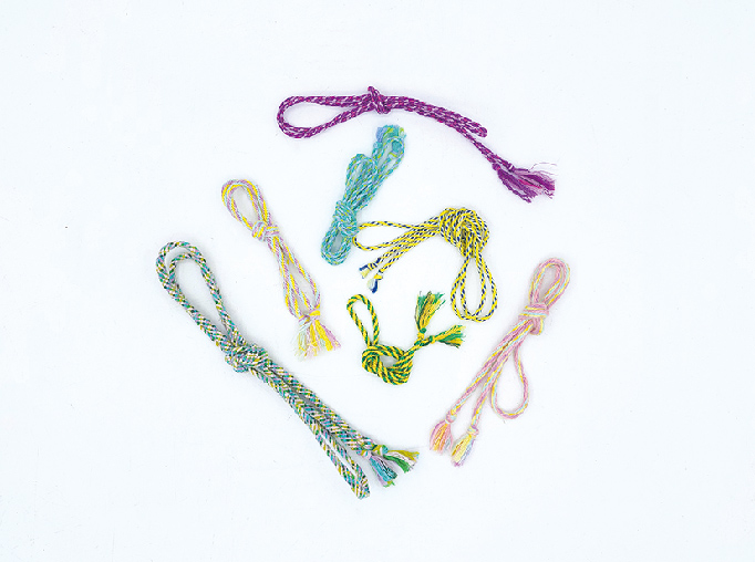 ししゅう糸で作った組紐です。 ミサンガみたいにうでに巻きつけたり、 紙を結ぶ時に使ってください。 糸の数が7本~16本まであり いろいろな組み合わせで作ってます。