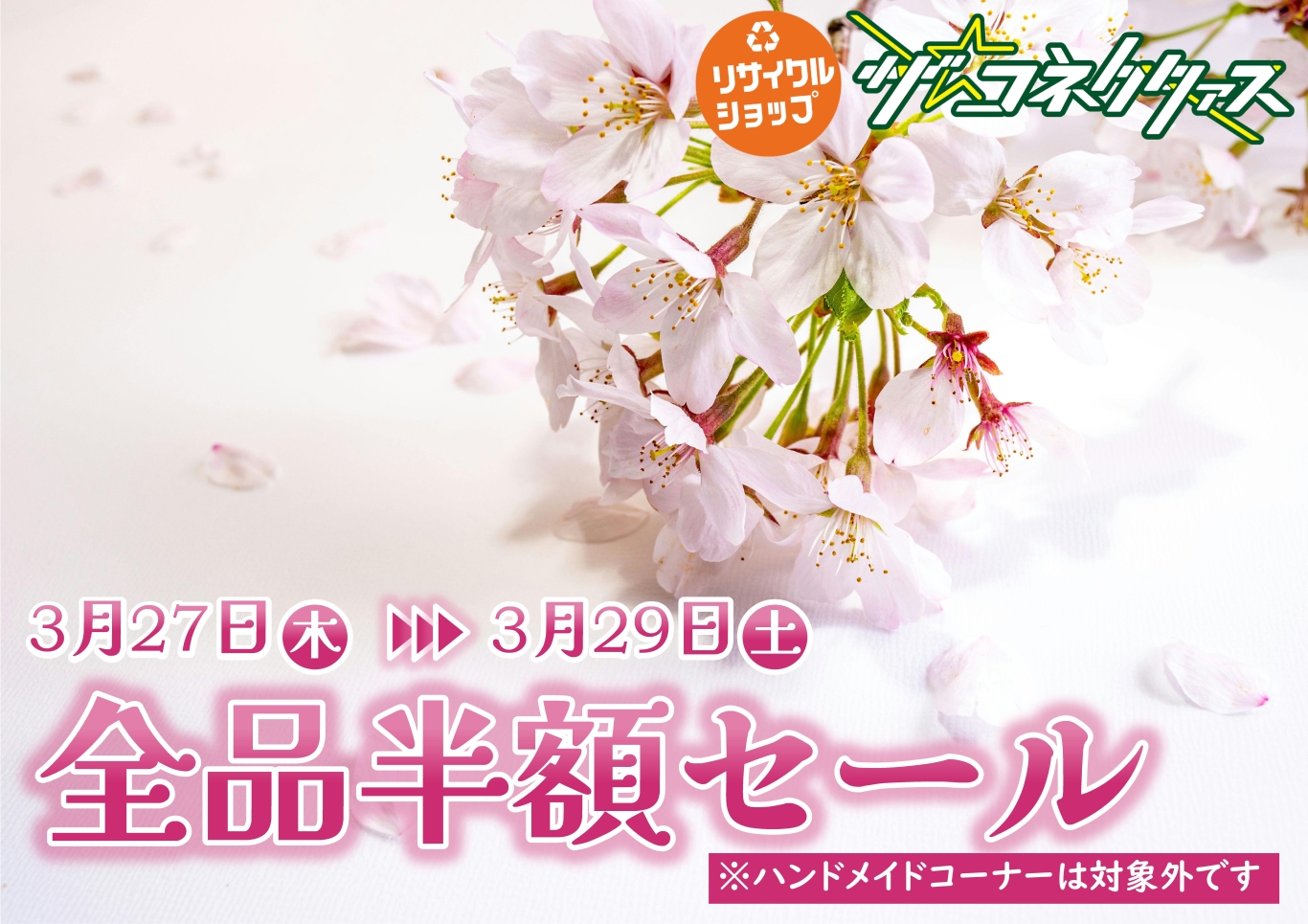 店内全品半額セール 5日間開催!